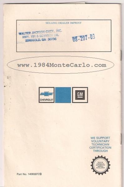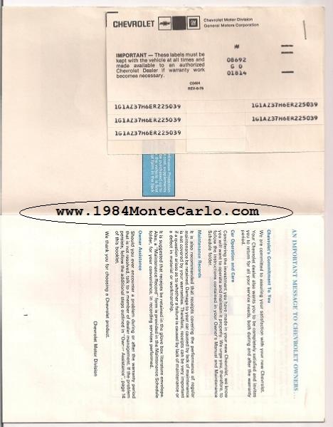 Original "GENERAL MOTORS MAINTENANCE SCHEDULE FOR 1984" Booklet